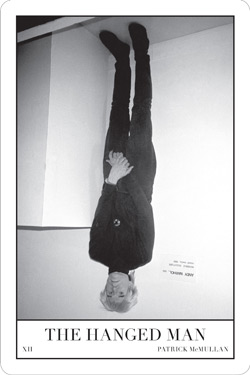 Patrick McMullan, The Hanged Man (Andy Warhol as the “Invisible Sculpture” at Area, NYC), 1985/2010Homepage Banner Composite:• Patrick McMullan, The Hanged Man (Andy Warhol as the “Invisible Sculpture” at Area, NYC), 1985/2010• Francesco Vezzoli, Queen of Swords (Study for a Portrait of Lana Turner as Judith, queen of spades (After Vincenzo Catena)), 2010• Yoshitomo Nara, Four of Swords, 2010• Karl Lagerfeld, King of Wands (Self Portrait), 2010