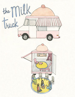 Image credit:Jill Miller, The Milk Truck, 2011Public Art Performance. Illustrative rendering by Vicky Yuh Homepage banner image credit:Dulce Pinzon, MARIA LUISA ROMERO from the State of Puebla works in a Laundromat in Brooklyn New York She sends 150 dollars a week, 2005-2010