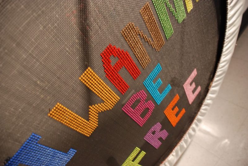 Cecilia Ebitz, I Wanna Be Free, detail of cross-stitching, 2010