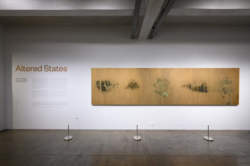 “It’s very weird.. they never stopped dripping.” More than 45 years later, unpredictability remains a hallmark of the series. In June of 2020, after a power outage disabled the museum’s climate control for several days, staff conservators noticed changes similar to what Warhol observed in Paris. New drips appeared on the surface of Oxidation (1978), shown here, and the areas of corrosion changed color.